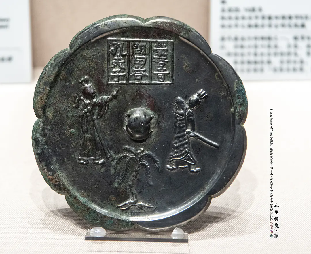 三乐镜图饰刻板,已成定式,直至宋元时仍有仿作,其纹饰除形制相异外,其他几乎与唐时无异。